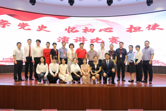 (通讯员 唐艳)为进一步拓展党史学习教育学习方式,激发全院教职工爱党爱国信念和干事创业热情,6月2日下午,学院在新实训大楼学术报告厅举行“学党史、忆初心、担使命”主题演讲比赛。院党委书记谢革非,院党委副书记、院长雷和平出席活动。此次竞赛共有12名选手参加,基础教育部党支部选手付华艳(下图第一排左四)获得三等奖。