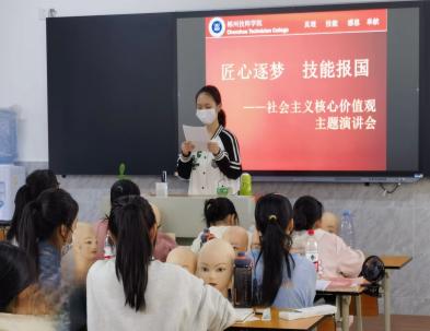 根据语文教材内容,本学期文化素质教研组在语文教学中设计了“匠心逐梦,技能报国”班级主题演讲赛,旨在提高学生的演讲水平,同时紧密融合课程思政,引导学生深入理解“爱国敬业”的深刻含义,特别是让学生对标榜样、结合实际,做到在思想感情上认知认同,在学习生活中遵循践行,使匠心逐梦、技能报国深深融入学生的思想意识、精神世界。为了保证活动的顺利开展,并达到预期效果,教师们事先制定了周密的活动方案:一是收集学院公众号近年发布的技能成才先进人物事迹资料转发给全体学生,同学们通过学习这些鲜活的人物事迹受到了精神的洗礼,同时也为写作演讲稿积累了大量的素材。二是组织观看2022年下期人社部“匠心逐梦,技能报国”演讲比赛部分获奖视频,为学生学习演讲技巧提供了样板。三是以赛促学,激发学生的参与积极性。班级演讲比赛分小组赛和班级赛两个阶段,每个学生要在小组赛中进行演讲,每个小组选拔出优胜者代表小组参加班级赛,班级组成评委小组,评委按照评分标准进行评价,考核成绩纳入学期语文总评成绩。