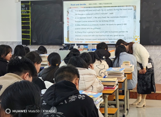 作为本次公开课的主讲人,曹慧敏老师独具慧眼,根据英语教学及对学生特点的深入了解,全程设计了既充满趣味性又提升英语阅读理解能力的高效课堂。曹老师通过非凡的亲和力,循循善诱,多角度激发学生内在的学习动机,在各教学环节中巧妙地融合了多媒体教学工具和互动式学习方法,使原本枯燥的知识变得生动有趣。在她的带领下,学生们主动参与到课堂讨论中,积极思考与应答,课堂氛围活跃而热烈。参与听课的领导、老师给予了高度评价。