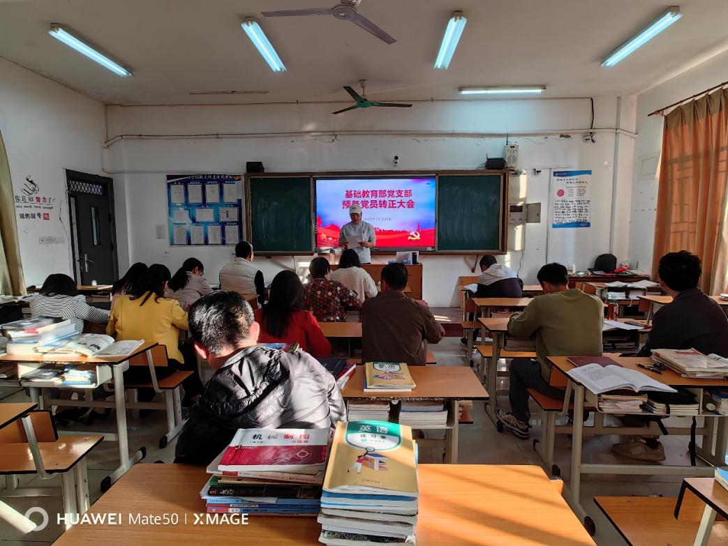 (通讯员 唐艳)根据发展党员工作计划,2023年11月28日下午,基础教育部党支部召开预备党员转正大会,讨论王肖可岸、罗曙两位同志的转正问题。大会由支部书记彭妍燕同志主持,全体党员参加会议。此次会议秉承“公平、公正、公开”的原则,严格按照各项程序进行。