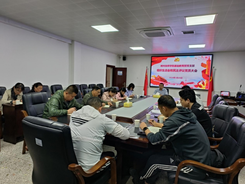 (通讯员 张春艳)2024年3月25日下午,基础教育部党支部开展了组织生活会和民主评议党员大会,党支部书记彭妍燕同志主持会议,全体党员同志参加。