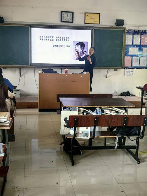 (通讯员刘婷婷)首夏犹清和,芳草亦未歇。为了进一步优化课堂教学,浓厚教学教研氛围,提高教师的专业素养和课堂教学水平,5月27日下午,基础教育部在热烈的掌声中迎来了雷慧珍老师在明德楼室内设计23501班的公开课展示。本次公开课以李白脍炙人口的《将进酒》为主题,引领师生们一同走进诗仙李白的豪情世界。基础教育部领导及各教研组无课老师参加了本次活动。