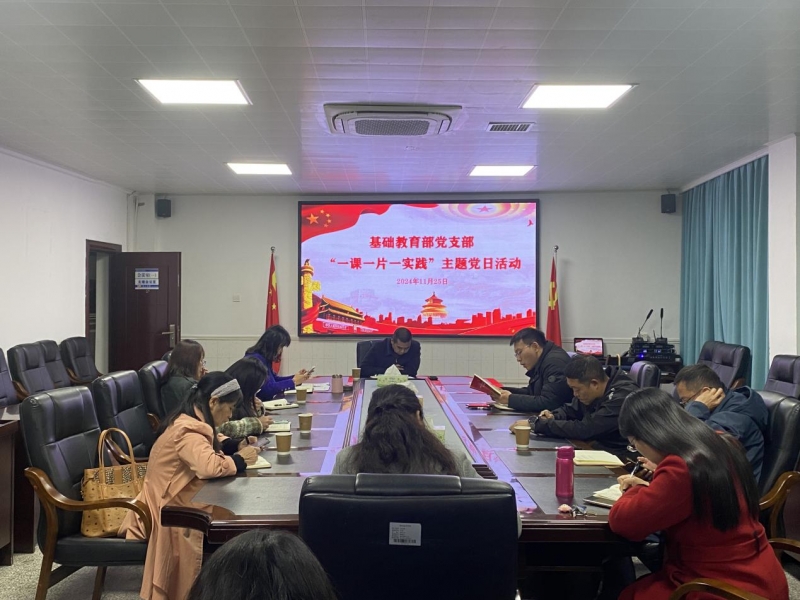 (通讯员 张春艳)按照“一月一课一片一实践”活动要求,2024年11月25日下午,基础教育部党支部开展了十一月份“一月一课一片一实践”主题党日活动,党支部书记彭妍燕同志主持活动,全体党员参加。